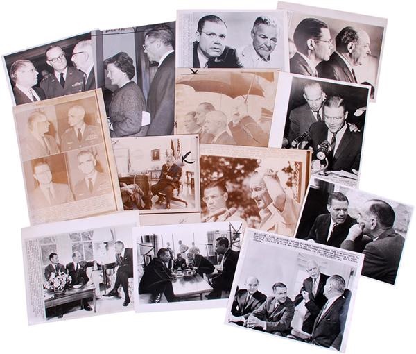 In 1970 Susan Saxe, along with three other accomplices, hatched a plot to hold up a Brighton MA bank to get money to buy explosives that would be used to arm the Black Panthers. Included in this lot is a rare "Wanted by the FBI" poster sent to the San Francisco Examiner and dated Nov 9, 1970 as well as fifteen news service photos covering her crime and eventual capture in 1975 in Philadelphia. Overall Excellent.