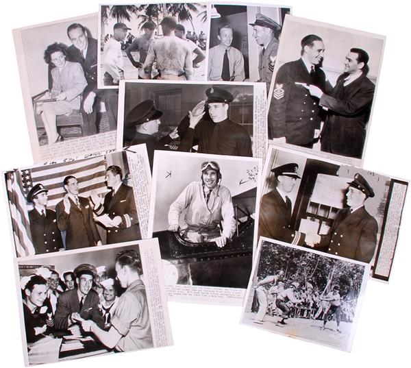 High quality collection of Bob Feller serving in the military during WWII. All date from 1941-1945 and most picture him in uniform. One great image picures Feller playing in a Pacific All-Star Game in 1944. 6 x 8 to 8 x 11''. EX-MT