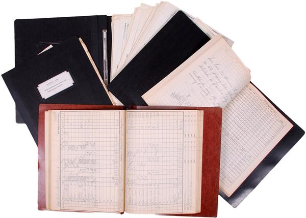 Claude Haring was the long-time baseball announcer who had his start at WIBG in Philadelphia. Here is a huge collection of (300+) scorecards, filled out in Harings hand, as he announced games from the 1940's to the 1960's. All are dated and meticulously filled out in pencil. This amazing archive includes games played by the Mets in their first year and, unpicked for gems, is sure to include many other significant games. All but a handful of the score sheets are held within four binders.