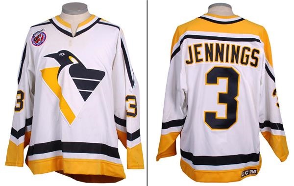 Lot # 571: 1992-93 Grant Jennings Pittsburgh Penguins Game Worn Jersey