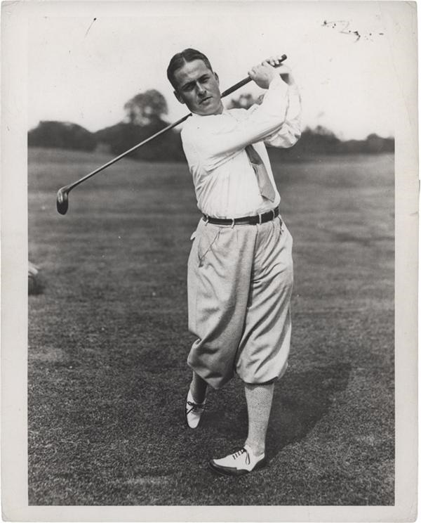 Vintage 8 x 10'' photograph of Bobby Jones at the end of his classic swing. Some minor edge wrinkles. Overall Excellent.