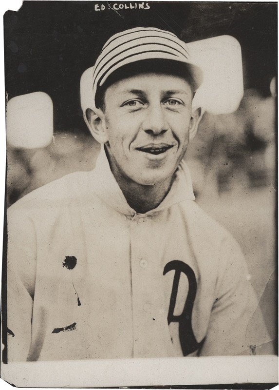 Vintage 5 x 7'' photograph of Hall of Famer Eddie Collins by the noted photographer George Grantham Bain (stamped on the back). A few minor chips on the extreme edges, nice image.