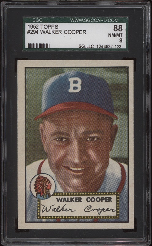 Lot # 432: 1952 Topps #294 Walker Cooper SGC 88 NM/MT 8