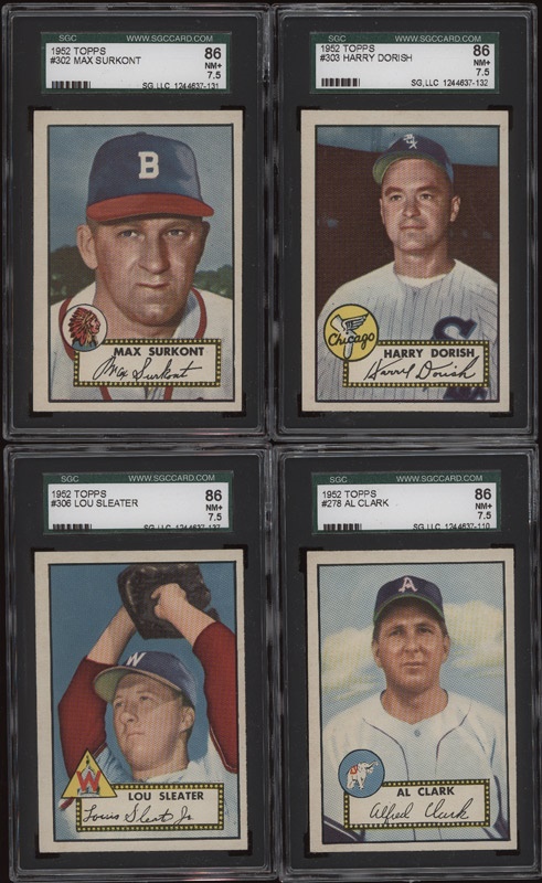 Lot # 435: (4) 1952 Topps Baseball Cards SGC 86 NM+ 7.5