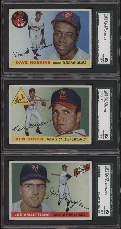 Includes: #125 Ken Boyer Rookie #133 Dave Hoskins #144 Joe Amalfitano All SGC 92 NM/MT+ 8.5