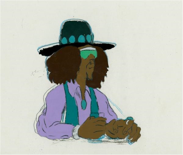 A fabulous piece of 1970's Americana. Two authentic Jimi Hendrix cells, complete with both pencil drawings and color overlays. A rare and special find for all Jimi Hendrix enthusiasts out there.