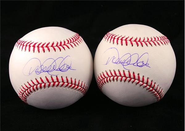 One lot of two Official Major League Selig Baseballs, each single signed on the sweet spot in blue ballpoint. Steiner COA. Mint.