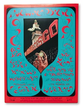 This is the BG263 unusual double-sized Fillmore poster with symbolic David Singer artwork. VG+.