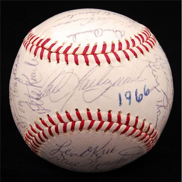 Team signed 1966 Boston Red Sox baseball. This is an official Reach American League (Cronin) ball and has been signed by 28 members of the '66 Red Sox. Signatures include HOFer Carl Yastrzemski in black ball point on the sweet spot. Other Red Sox greats to sign this off white ball include Rico Petrocelli, Tony Conigliaro and Jim Lonborg.