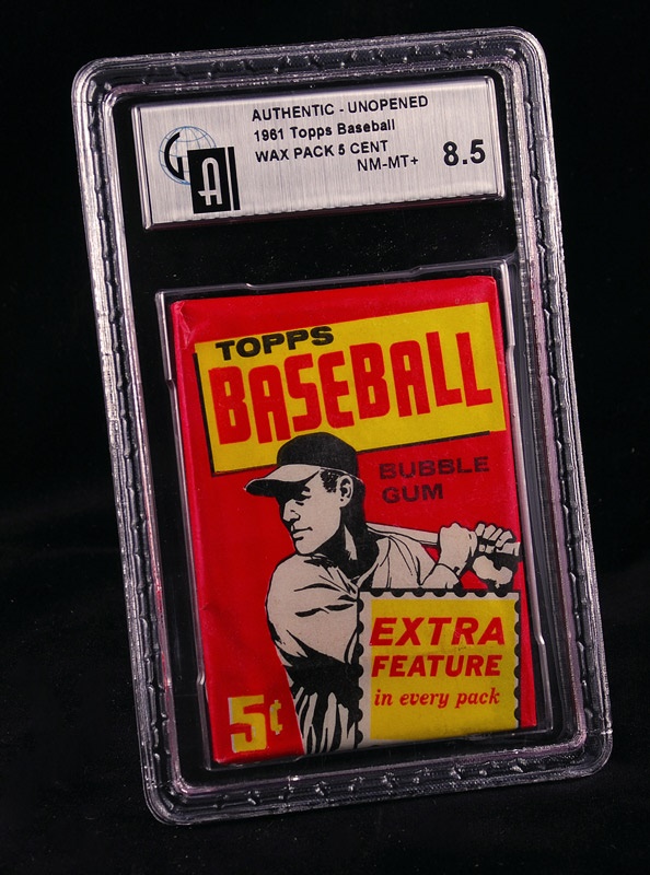 Lot # 258: 1961 Topps 5 Cent Baseball Wax Pack GAI NM-MT+ 8.5