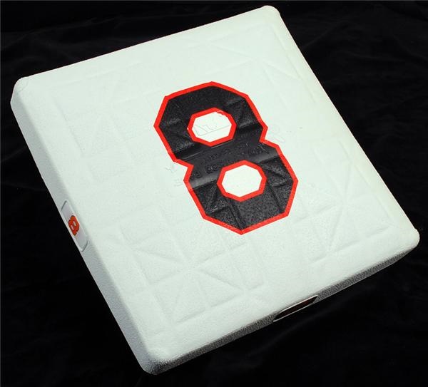 To honor Cal Ripken during his last season, Camden Yards placed a commemorative Ripken retirement base with the number 8 on top at third base. This particular base is not game used. It also has an 8 on two sides, MLB on one side and Orioles on the last side. Made by Schutt Sports, this is an unused base and still tough to find...