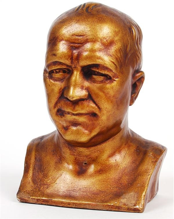 Knute Rockne was the legendary coach of the Notre Dame football team from 1918 to 1930. He led them to 6 National Championships. This plaster bust is 9" tall by 4 1/4" x 6 1/2". It is mint 1930's issue and bears a great likeness to "American football's most renowned coach".