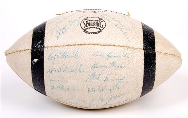 White with black stripes, Spalding Official "388" Football (Norm Van Brocklin). LOA for 30 autographs. Players include Don Shula, Art Donovan, Gino Marchetti, Raymond Berry and many more. Some of the blue ball point signatures are faded, but overall they are in very good condition.