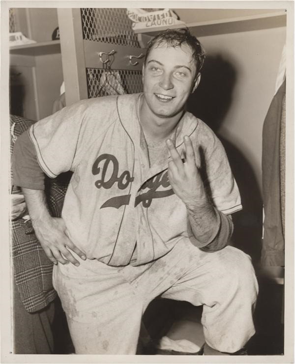 Lot # 239: Famous Johnny Podres World Series Photograph (1955)