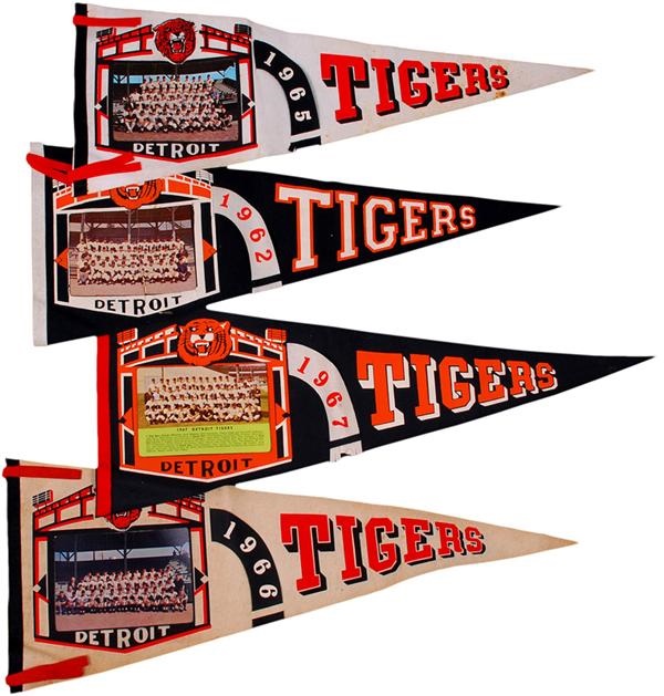Detroit Tigers Picture Pennants from 1962, 1965-1967. The soft felt