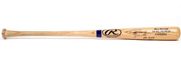 Palmeiro used this Rawlings Big Stick to hit career Home Run #405 as noted by Palmeiro next to his signature on the barrel. Stamped on the knob "288 RJ 875 00." No cracks, shows moderate use.