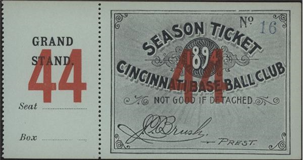 Lot # 38: 1894 Cincinnati Reds Season Full Ticket
