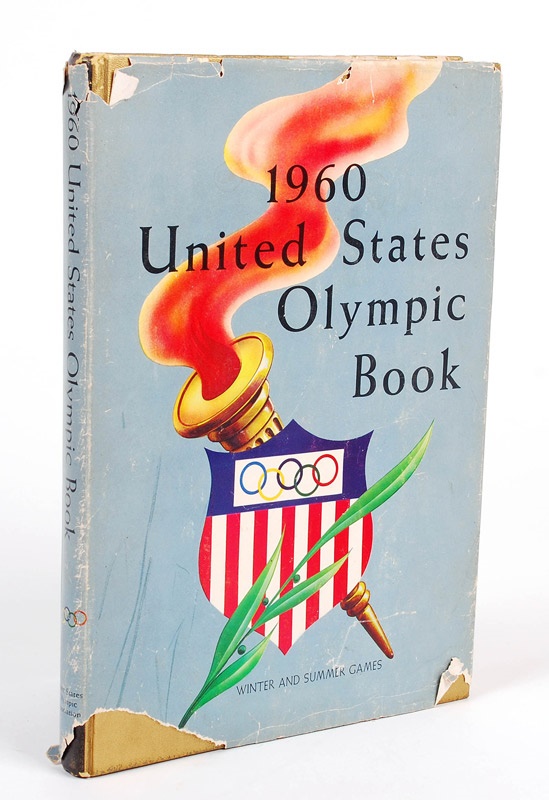 The winter and summer Olympic Games of 1960 are represented in this hard cover book. Book is 408 pages and is 9" x 12" in size. Loose leaf cover is torn along the edges. Summer games were in Rome. Winter games took place in Squaw Valley, CA.