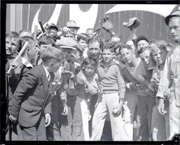 Five, high quality, August 1936 negatives of the PCL's Frank “Lefty” O’Doul Day. Great crowd images of kids on the field that capture the excitement and energy of the day. 4 x 5''. NRMT.