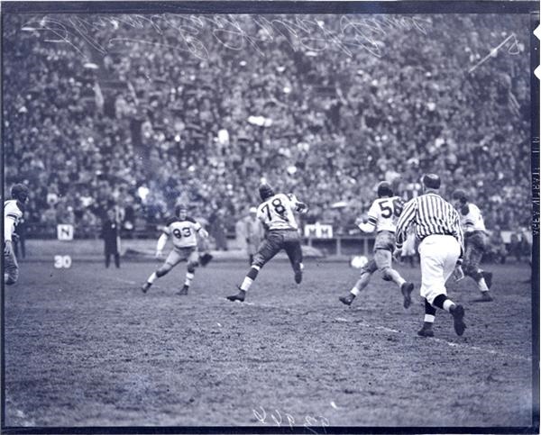 Collection of 4" x 5" negatives from the 1936/1937 East -West shrine college football all-star game. Includes team photos as well as game action.