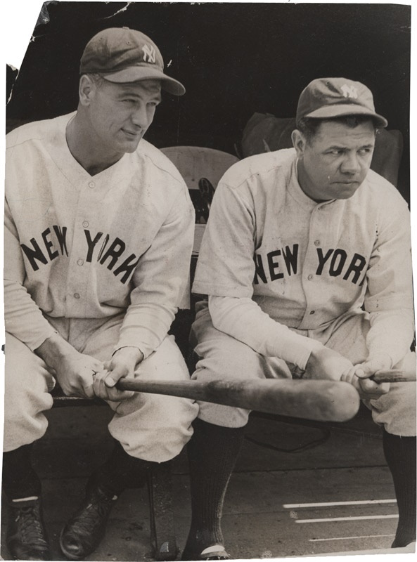 Lot # 202: Babe Ruth and Lou Gehrig in Yankees Uniforms (1932)