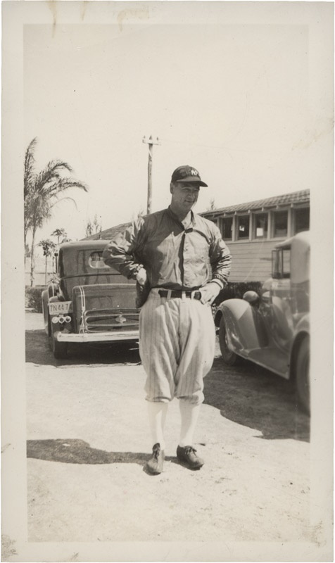 2.25 x 4.5'' snapshot photograph of Lou Gehrig in Yankees uniform in spring training 1928. Nice clear image. Small wrinkle in upper left corner, overall Excellent.