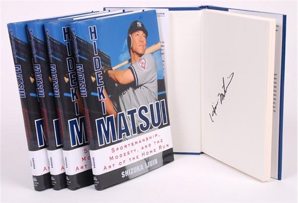 Yankee baseball star, Hideki Matsui, is the subject of a new biography by his friend and writer Shizuka Ijuin. Here are (5) first edition hardcovers of 2007's Hideki Matsui: Sportsmanship, Modesty, and the Art of the Homerun. All five copies have been signed by Matsui in mint black Sharpie inside the front covers. All are in new condition.
