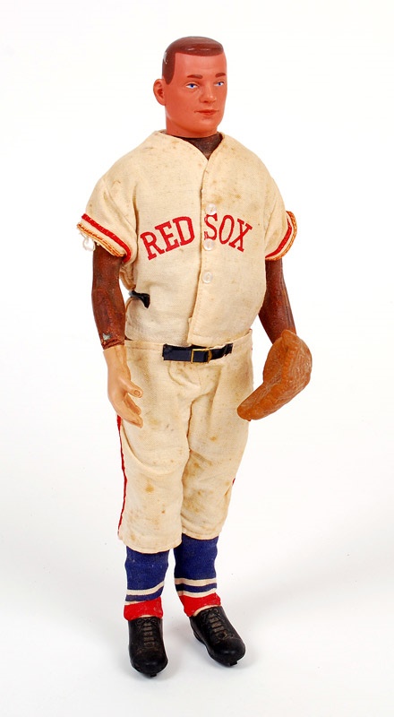 Rare "Teddy Ballgame" 1950's Red Sox doll. Doll is 13" in height and in VG condition overall. His uniform is showing some wear and spotting. He is missing the baseball in his right hand. Rubber is also showing some cracking with some glue spots on his head.