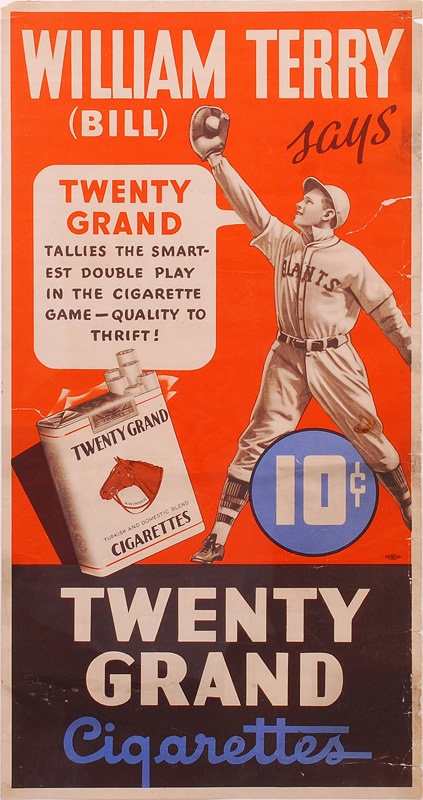 Lot # 58: Rare Bill Terry Twenty Grand Cigarettes Advertising Poster