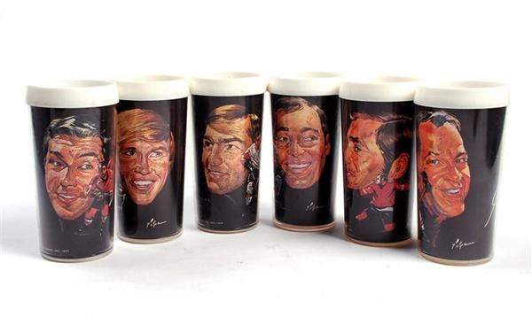 Popular plastic cups with inserted artwork by Volpe and issued by Pro Star Portraits in 1971. Players include Gordie Howe, Frank Mahovlich, Connelly, Delvecchio, Edwards, etc. EX-MT