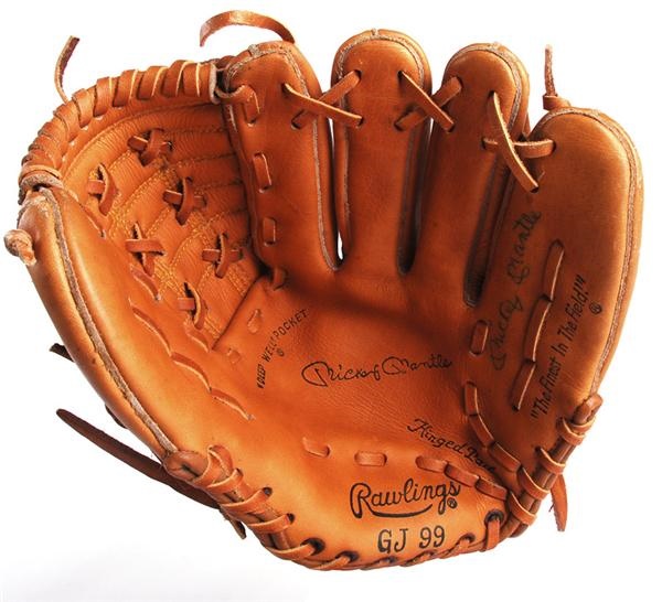 Beautiful leather junior model Mantle Rawlings baseball glove single signed by Yankee slugger Mickey Mantle in ball point on the inside of small finger as well as a facsimile signature inside of the pocket. Comes with PSA/DNA LOA.