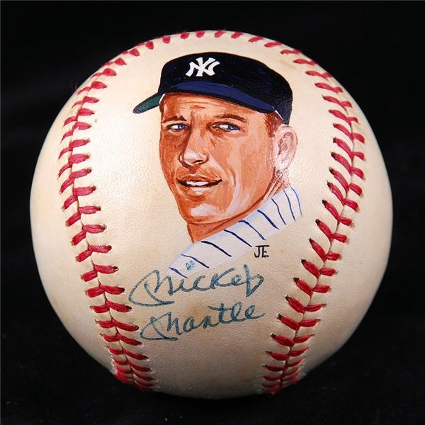 Official American League MacPhail Baseball signed just below the hand painted portrait in mint blue ballpoint. Artwork is much better than that normally seen on these types of items. JSA authentication decal affixed.