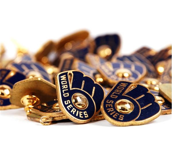 Lot # 225: Hoard of 1982 Miwaukee Brewers World Series Press Pins and Charms (88)