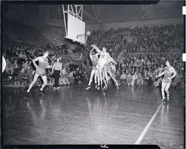 Another nice lot of vintage 4x5" negatives from the San Francisco Examiner Photo archives. Here are (130+) covering college & high school hoop action in and around SF in 1943. Colleges include: USF, SF State, Cal, Stanford and Modesto Junior. The 1943 Examiner tourney is well covered in this collection, as well. Overall in fine condition.