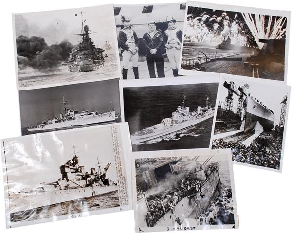 Assemblage of naval photos (300+), mostly of British vessels, dating to the WWII era. Range of sizes from 5" x 7" to 9" x 12" and conditions varying, with most VG-EX. The majority have news service bureau caption sheets attached to the verso.