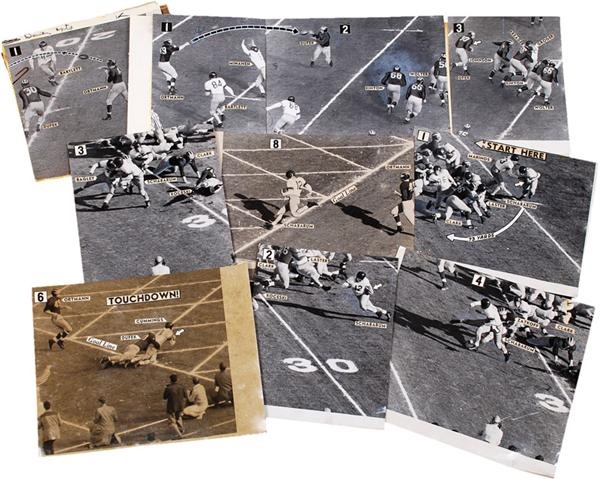 Michigan defeated the Cal Golden Bears in 1951's Rose Bowl and staff photographers from the San Francisco Examiner captured all the action. Editors created multi-panel images for the paper detailing all the key plays of the day. (15) images measure 6x9" and up. Good or better in condition.