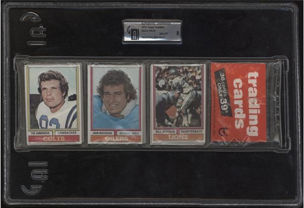 Lot # 405: 1974 Topps Football Rack Pack with Stars Showing GAI NM-MT 8