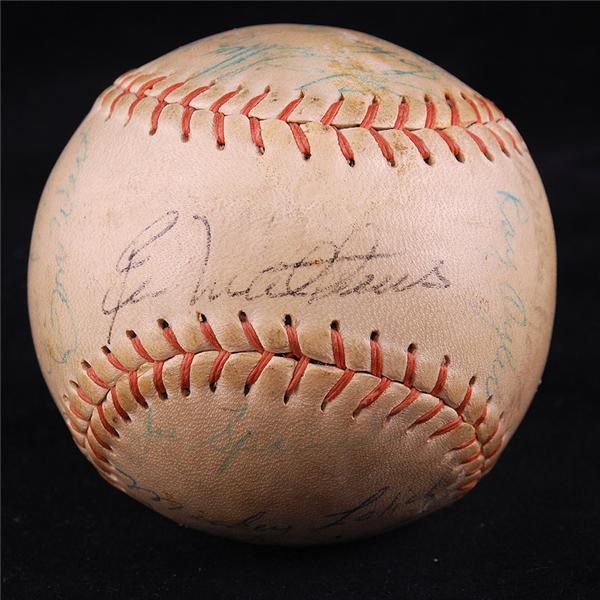"Detroit Tigers" Baseball signed by 26 members of the World Championship team. Includes Ed Mathews, John Warden (dates the ball to 1968), Bill Freehan, Mickey Lolich, Tony Cuccinello, Norm Cash, John Sain, Willie Horton, Ray Oyler, and more. Signatures grade "1-7" on scale of "1-10" with most "5/6"