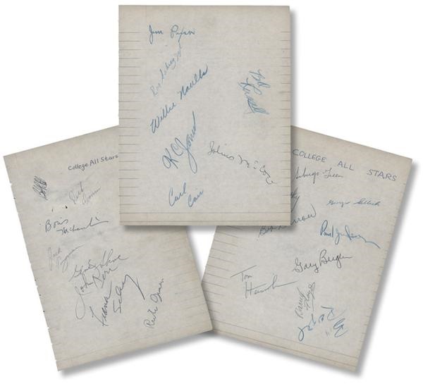 The autographs of (25) college basketball All-Stars were collected in 1955 by a young fan. Among them are five future Hall of Famers: Bill Russell, KC Jones, Tommy Heinsohn, John Twyman and Bob Pettit. Signatures rate 8-10/10.