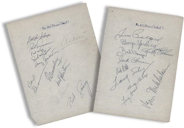 Super collection of (21) signatures of the leagues best players from the 1953-54 basketball season. Includes: Dolph Schayes, Dick McGuire, Bill Sharman, Ed Macauley, Paul Seymour, George Yardley, Bob Wanzer, Jack Coleman, Bob Pettit, Larry Foust, Vern Mikkelsen and more. Signatures rate 8-10/10.