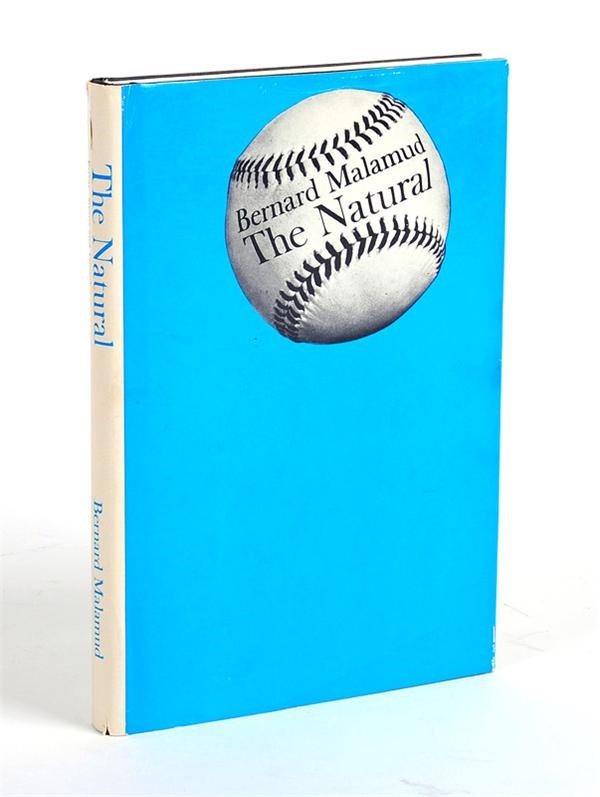 Offered here is a 1952 hardcover book club edition of Bernard Malamud's classic baseball novel, The Natural. The book jacket is VG overall. It is slightly scuffed but still glossy. There is also a small amount of edge wear on it that includes small tears at both end of the spine. The boards and interior pages are in superb condition, appearing unread.