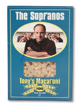 Woke up this morning…and my in-person autograph specialist brought me this HBO Cable promotional box of "Tony's Macaroni" hand signed by the star James Gandolfini. Each piece of macaroni is an HBO logo, how cool. "Just when I thought I was out …they pulled me back in!" NRMT.
