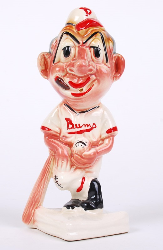 8'' tall porcelain bank of Dodgers mascot with "D" on cap and "Bums" on the chest of his jersey. Mint, as nice as the day it was made.