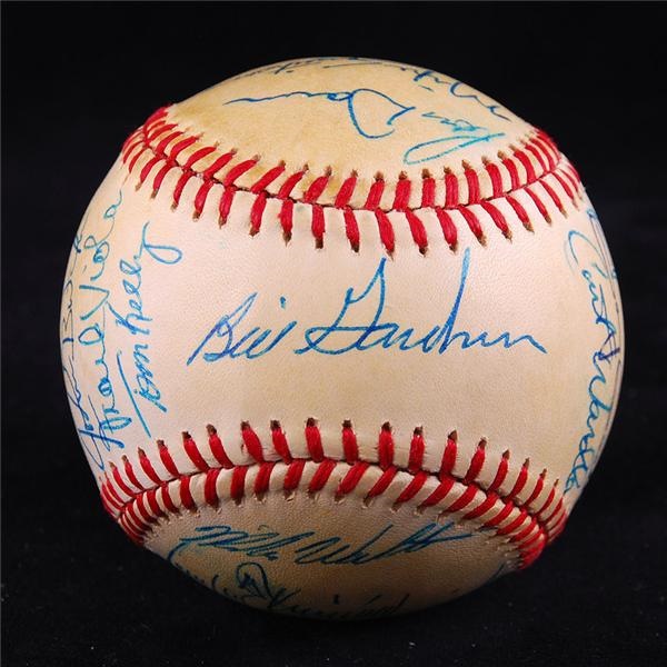 Official American League Bobby Brown Baseball signed by 20 members of the team including Kirby Puckett (Rookie), Billy Gardner, Tom Brunansky, Frank Viola, Tom Kelly, Gary Gaetti, Kent Hrbek and more. There is some toning on the surface of about 70% of the ball. Nice bold signatures in ballpoint.