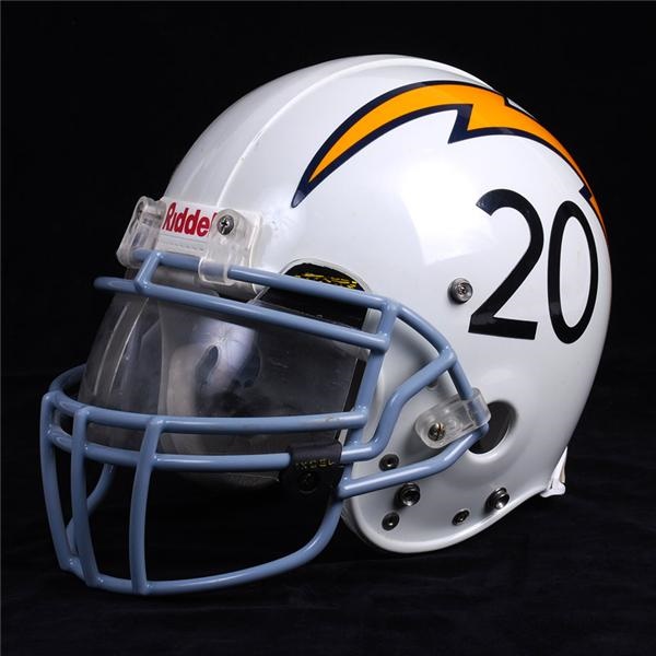 This authentic game used helmet was worn by #20 but the date of the actual game is unknown. The Riddell helmet has the old style Chargers logo and comes with an official NFL COA. The PSA/DNA certification # is 1N07408.