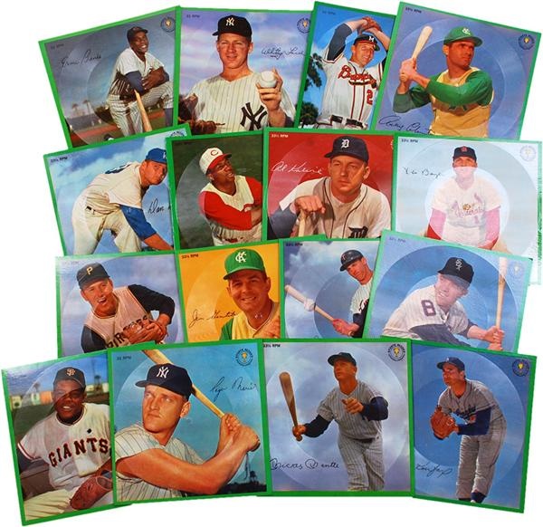 Complete set of 16 records including the short printed Willie Mays. All are EX-MT to Mint with most NM-MT. No creases, the only flaws are some light corner dings on a few of the records. Most are as nice as the day that they were made and are unplayed.