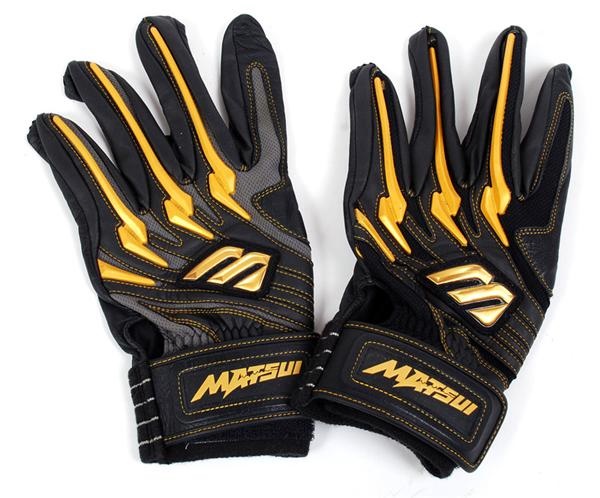 Lot # 218: Hideki Matsui Yankees Game Used Batting Gloves