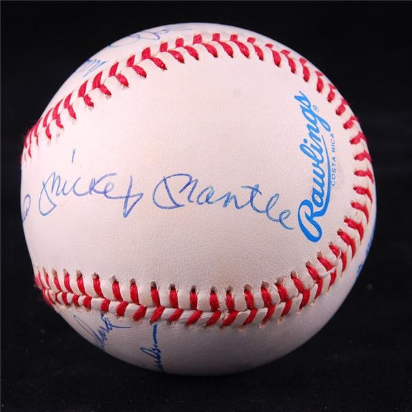 Lot # 95: New York Yankees Greats Signed Baseball with Mickey Mantle