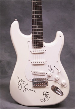 Fender Stratocaster electric. Signed by Jack Bruce (during the Ringo Star All Star tour), Ginger Baker.(at Irridium Jazz Club) and Eric Clapton at a New York hotel.