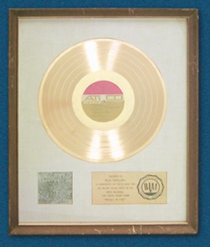 This original "white matte" award for the double album, "Wheels Of Fire" is presented to the album's producer, Mountain bassist, the late Felix Pappalardi. Number one on the Billboard charts for four weeks, the album was RIAA certified gold on 7/22/68. Originally procured along with numerous other awards, clothing, and instruments from Felix's wife many years ago. While the frame has numerous scratches and dings, this is typical of the soft wood moulding used to manufacture awards from the "white matte" era. The original hanging hardware, original backing paper, and "New York Frame And Picture Co." sticker are intact, although numerous tears are evident.